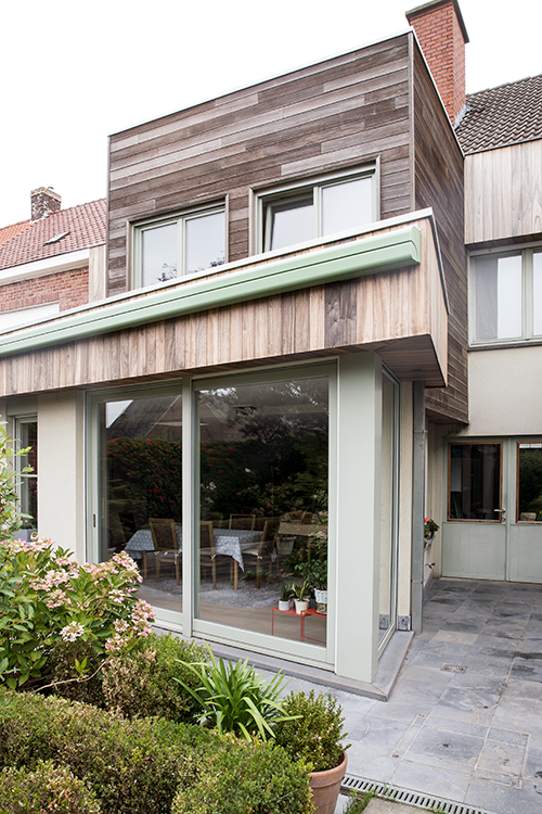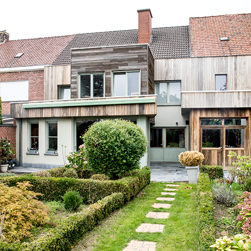 De bedoeling van dit project was om twee delen van twee woningen te integreren als één. Door de gevelwerken aan beide gebouwen ziet de woning er uit als één samenhangend geheel.