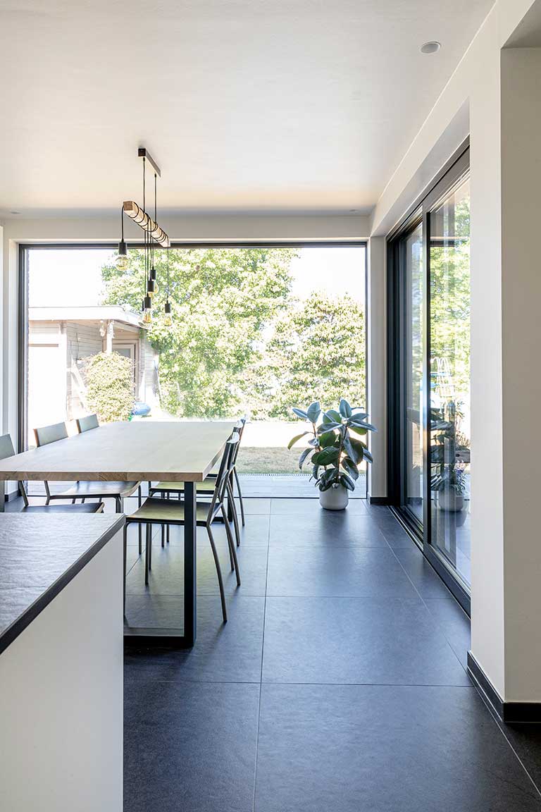 Een toffe verbouwing van een huis. Hierbij horen enkele elementen. Zo hebben we onder andere nieuwe ramen en nieuwe vloeren geplaatst. Daarnaast was er ook een uitbreiding van de keuken met verzonken ramen voor een mooi zicht naar buiten.