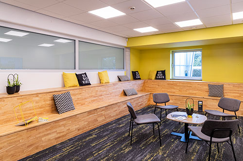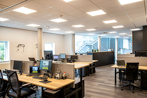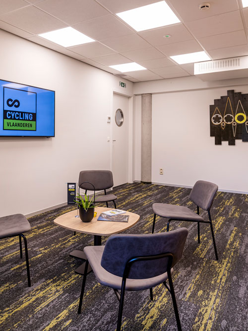 Voor deze openbare aanbesteding heeft het interieur een opfrissingsbeurt gekregen die volledig meegaat in de huisstijl van de onderneming. Naast die opfrising is er ook een extra volume bijgebouwd. In deze ruimte hebben we gezorgd voor ventilatie en klimatisatie. In elke ruimte komt er dus verse lucht binnen en is er zowel airco als verwarming voorzien.