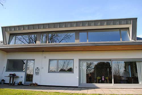 Het speciale bij deze dakkapel? De gevelbekleding is vervaardigd uit zink. Wat zorgt voor de toffe uitstraling van de dakkapel. Bij de carport was het de uitdaging om alles strak te houden dankzij de dunne planken.