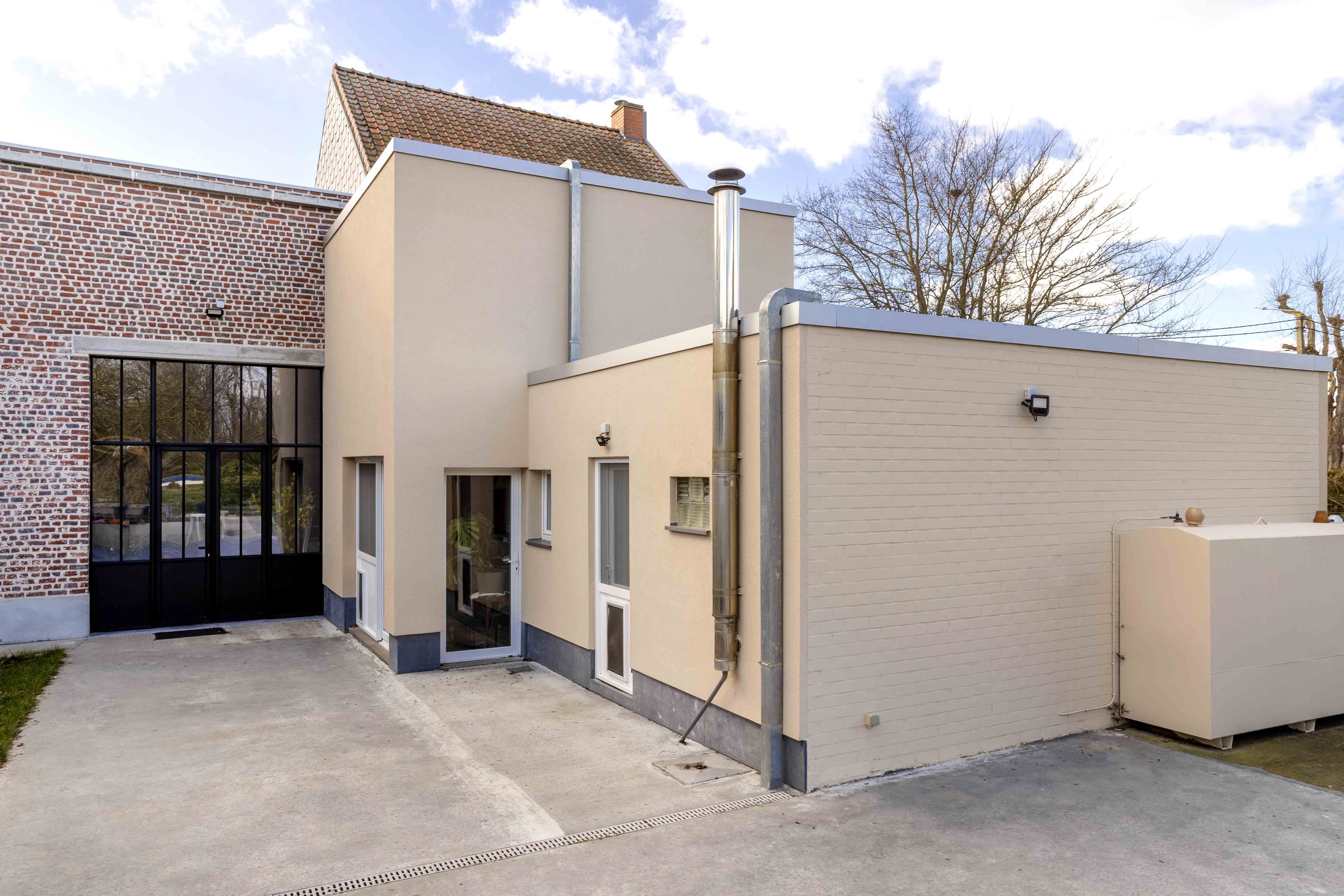 Deze warme familie nodigde graag kinderen, partners en vrienden uit voor feestjes, maar had hiervoor niet de nodige plaats. Hun aanpalende vlasschuur was compleet verouderd en werd enkel gebruikt als opslagruimte. We bouwden de schuur om naar een polyvalente ruimte. Daarnaast hebben we energiebesparende maatregelen (isolatie en crepi) in hun hoofdwoning geïmplementeerd. Vandaag plukken ze daar zeker de vruchten van. De budgettaire puzzel die we hebben gelegd bij aanvang van het project, werd na de verbouwing afgeklopt op +12%.